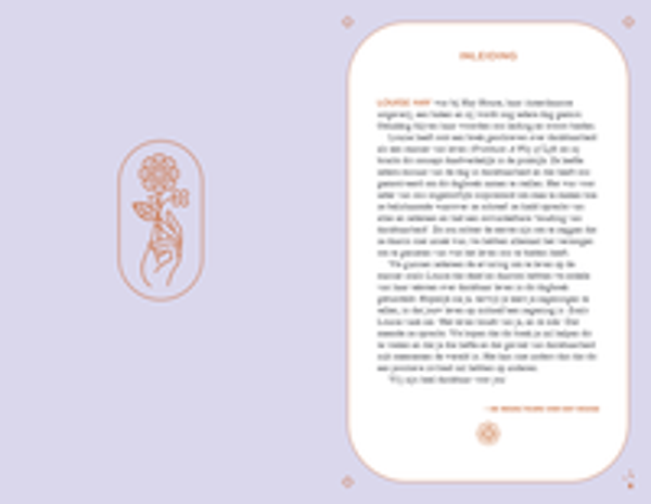 Louise Hay (1926-2017) was een spirituele lerares die tot op hoge leeftijd miljoenen fans en volgers heeft geïnspireerd. Zij staat bekend als een van de grondleggers van de zelfhulpbeweging; ze bracht als een van de eersten het verband tussen lichaam en geest onder de aandacht. Door Louises genezingstechnieken en positieve filosofie hebben miljoenen mensen geleerd hoe ze meer kunnen creëren van wat ze willen in hun leven, inclusief meer welzijn in hun lichaam, geest en ziel.