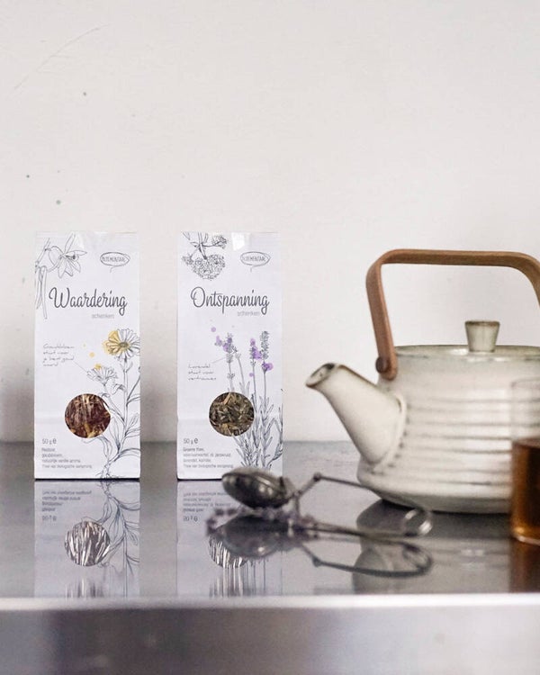 Groene thee met lavendel dat staat voor vertrouwen. 50 gram biologische thee. Groene thee, valeriaanswortel, st janskruid, lavendel en kamille