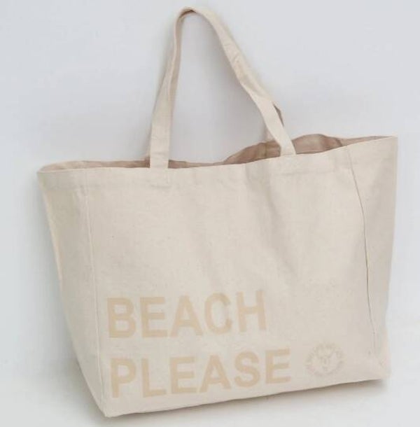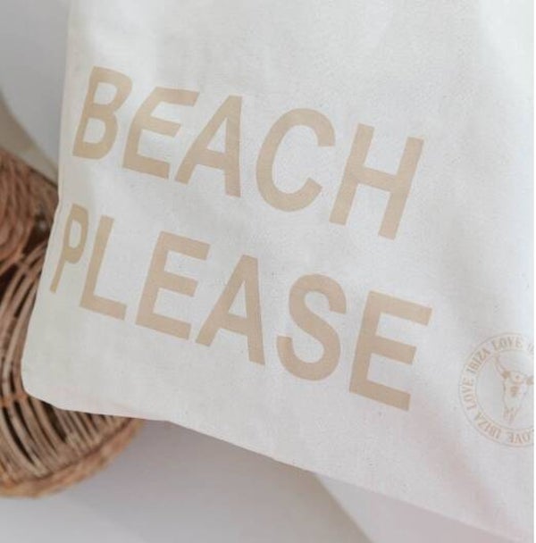 Let's go to the beach! Deze beige canvas strandtas met de tekst BEACH PLEASE is ideaal voor een stranddagje in eigen land of op vakantie. De tas is gemaakt van een zware kwaliteit organisch katoen.