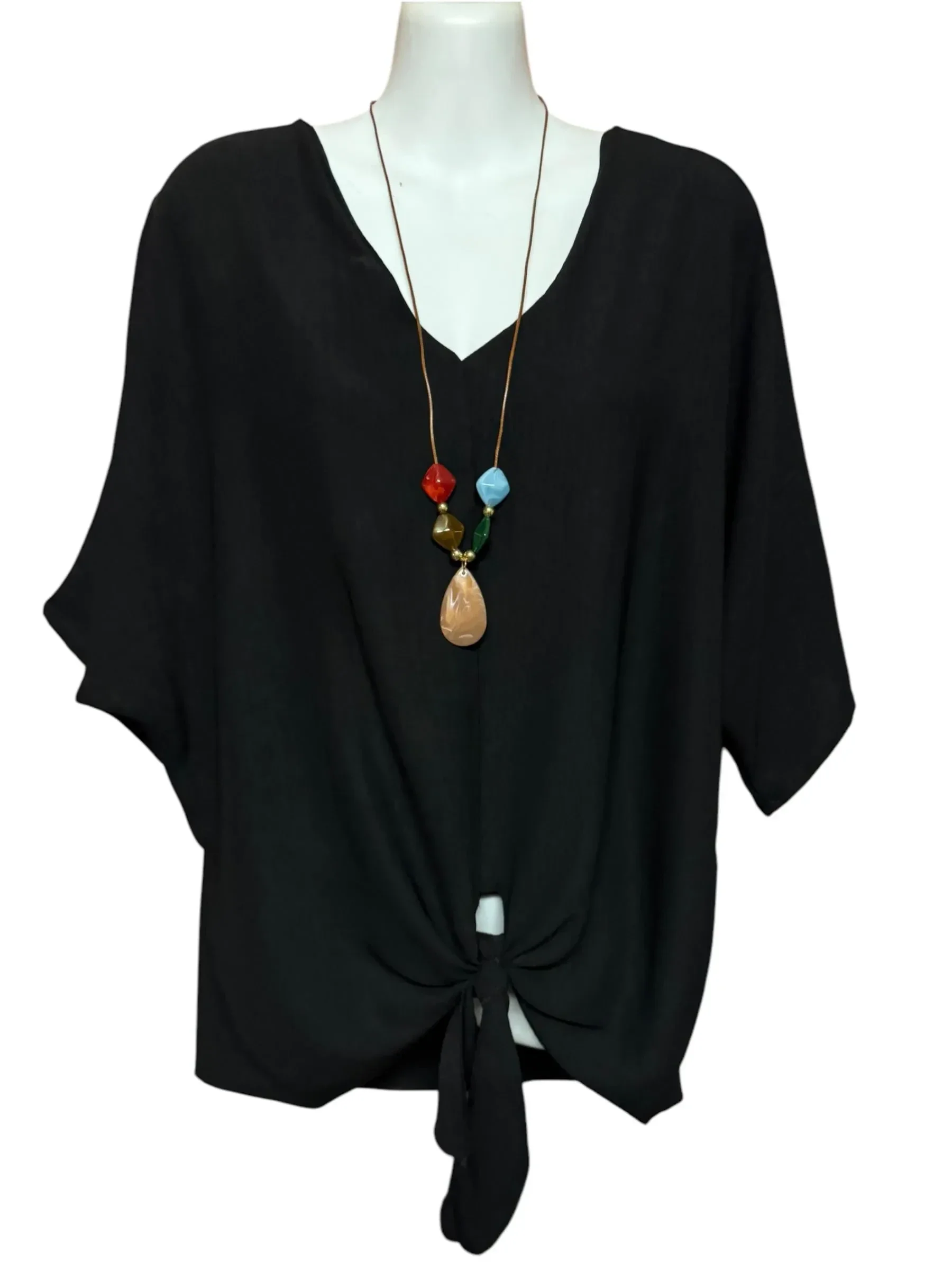 V-hals top met knoop incl. Ketting