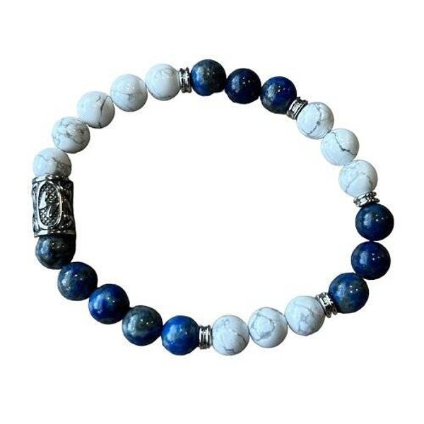 Heren armband 8 mm Amerikaans Howliet en Lapis Lazuli met Viking kraal
