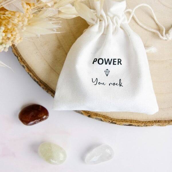Neem (één van) deze edelstenen met je mee of leg ze neer op een plek die goed voelt voor jou. Ze zijn verpakt in een mooi katoenen tasje die je kristallen zal beschermen en voorzien van een kaartje met de uitleg van de kristallen.
