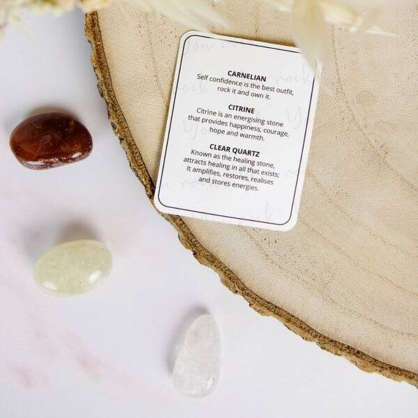 Citrien trekt succes en voorspoed aan. Citrien is de edelsteen voor financiële vrijheid, succes en overvloed op alle mogelijke manieren in je leven te brengen. Een hele fijne vrolijke edelsteen met haar gele zonnige kleur. Geeft je meer zelfvertrouwen. Deze kristal set zal je helpen bij het om je kracht en energie te geven Ieder kristal is uniek, daar het een natuur product is.