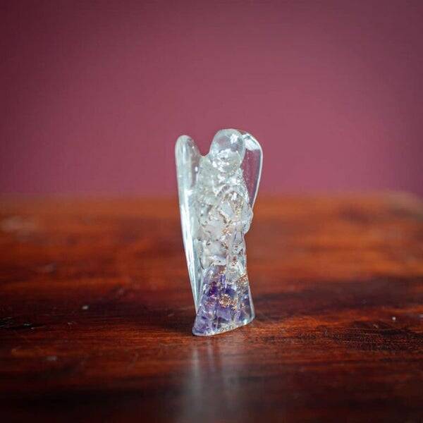 Deze prachtige Orgone Edelstenen engel bestaat uit onder andere de edelstenen Amethist, Rozenkwarts en Bergkristal. De engel is ca. 7 cm hoog.